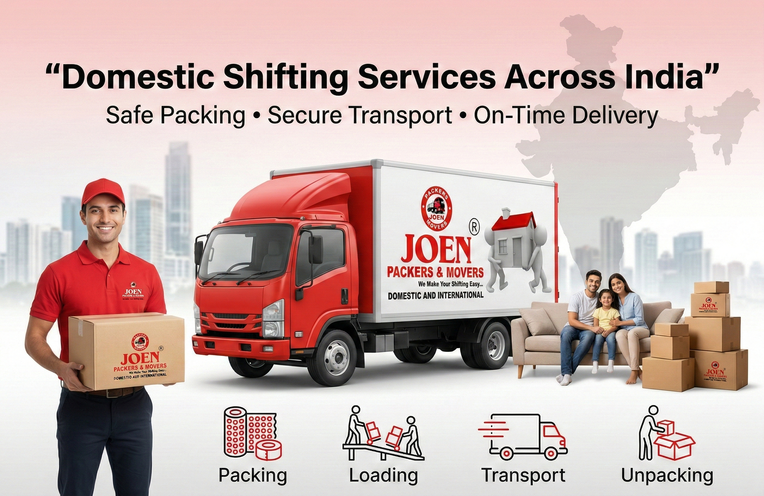 Joen Packers and Movers provides reliable and professional Domestic Shifting Services across India. With extensive experience in the packing and moving industry, we offer safe, efficient, and affordable household relocation services for families and individuals relocating locally or interstate.